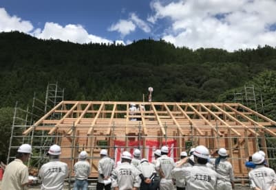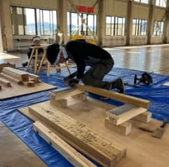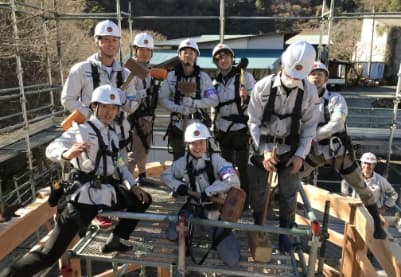 塾生全員が集まって1つの課題を造り上げる。他では味わえない大工志塾ならではの実践的な研修で本当の技能が身に付きます。群馬県神流町にて、約1週間かけて塾生全員参加で行います。