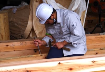 塾生の所属する工務店様のご協力を得てOJT(工務店修業)を実施することもできます。日常業務を通じた教育訓練(OJT, On the Job Training)において、基本的な作業の安全管理やマナー、大工道具の使用方法等を習います。